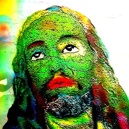 This is a manipulated photo of the Jesus statue in the lobby of St. Joseph Cathedral.